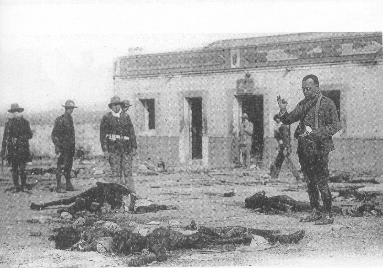 Cadáveres de soldados españoles abandonados en la cuesta de subida a la posición de Monte Arruit. Capellán castrense bendiciendo los cadáveres. Fotos tomadas el 24 de octubre de 1921.
