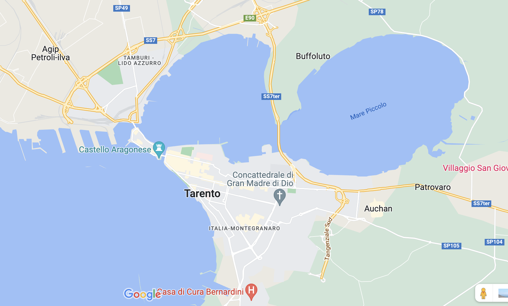 Tarento estaba rodeada de agua por todas partes, situada en una isla cercana al continente: por el sur, el mar y el golfo de Tarento; por el este y el oeste dos canales abrazaban la ciudad; por el norte ambos canales se enchanchaban formando una gran bahía, el mare piccolo, con fondo suficiente para albergar naves de alto bordo. Dos puentes situados al este y al oeste, defendidos por dos fuertes castillos, comunicaban Tarento con el continente. La ciudad se consideraba inexpugnable, siendo las defensas del norte las más débiles, pues hasta entonces a ningún enemigo se le había ocurrido atacar la ciudad por ese lado de tan difícil acceso. Su gobernador, fray Leonardo Alejo, comendador de la Orden de los Caballeros de San Juan de Rodas, la había abastecido en previsión a un posible asedio.