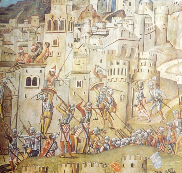 Mientras tenía lugar el combate en la loma que dominaba la ciudad, los barcos artillados de la flota se habían acercado a la ciudad e hicieron fuego desde las naves, logrando desmontar las piezas de artillería que los moros tenían en la ciudadela. Los soldados en tierra, al llegar a la ciudad en persecución de los moros, procedieron a asaltar las murallas ayudados de picas y escalas. El capitán Sosa, de la guardia del cardenal, fue el primero en escalar las murallas y, al grito de “Santiago y Cisneros”, izó el estandarte con las armas del cardenal en las almenas de la ciudad. Inmediatamente se vieron ondear otros seis estandartes españoles más. Bernardino de Meneses, al frente de los soldados reclutados en Talavera, conquistó una de las puertas de la ciudad. Algunos españoles entraron por la puerta del mar. Los moros no pudieron resistir el empuje de los españoles, y comenzaron a huir, tras sufrir numerosas bajas.