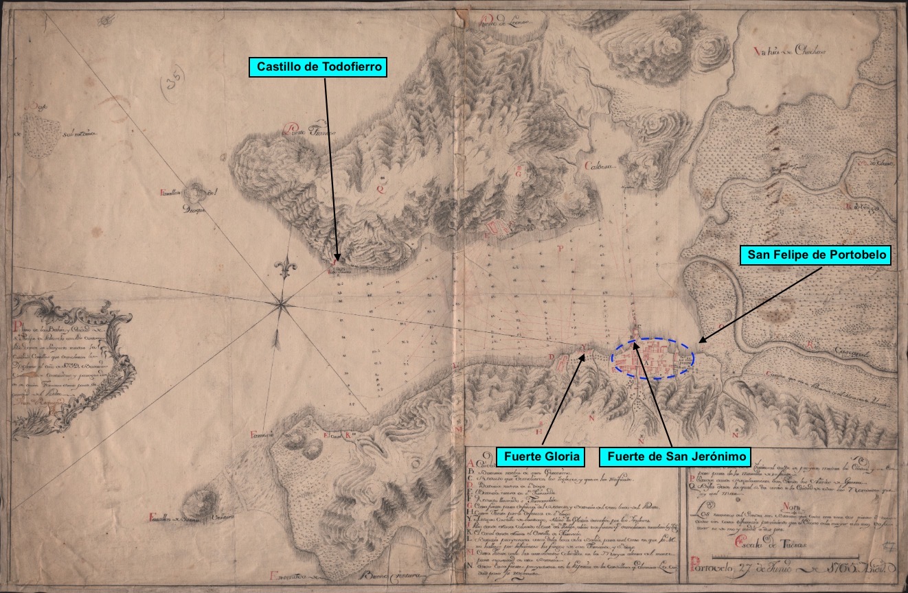 [03] Archivo General de Indias, Sevilla; expediente sobre la rendición de Portobelo, 1739-1743; estante 69, cajón 6, legajo 48. Según Aparici, en el Servicio Histórico Militar, Madrid.