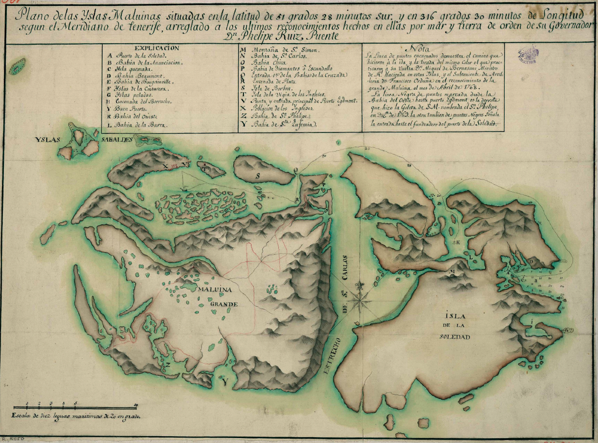 García Diego, Paulino. La estrategia española en el Atlántico sur. La crisis de las Malvinas (1764-1764). Revista de Historia Naval, número 125. Madrid, 2014. Páginas 9 a 26. 2,8 MB.
