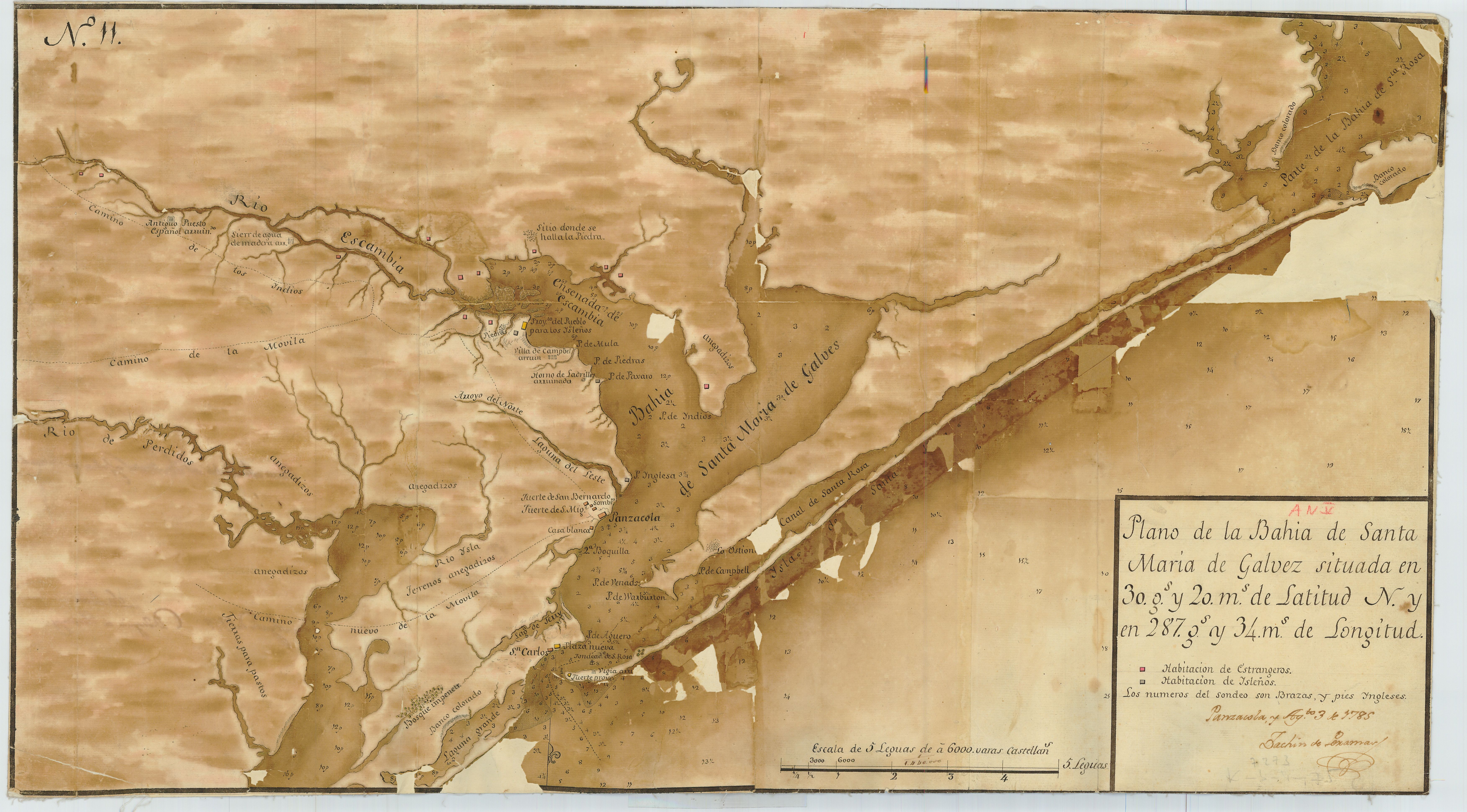 Mapas de 1761, cuando la bahía de Pensacola aún pertenecía a España, realizado con ocasión del traslado al presidio de dos compañías de granaderos y pertrechos de guerra a bordo de la fragata Tetis y del paquebote Marte, al mando del capitán de fragata don José Porlier (Fuentes: Mapa de la izquierda, Biblioteca Virtual de Defensa, ref: Ar.J-T.1-C.4_76; mapa de la derecha, Biblioteca Nacional de España.)El 4 de marzo Gálvez se reunió a bordo del San Ramón con todos los comandantes de la fuerza expedicionaria para anuniarles que se dirigían a la isla de Santa Rosa, en la entrada de la bahía de Pensacola, para desembarcar en ella, atacar la batería que los británicos tenían emplazada en la punta de Sigüenza y, posteriormente, entrar en la bahía sin esperar los socorros de Luisiana y Mobila. El plan fue muy bien acogido por los oficiales de la Armada.