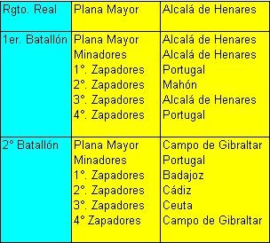El Regimiento Real de Zapadores Minadores tenía por aquel entonces disminuidos sus efectivos. De las diez compañías que lo formaban, tan solo había dos compañías en el acuartelamiento; las otras ocho compañías estaban agregadas al ejército de operaciones de Portugal, trabajos en Mahón, Campo de Gibraltar, Badajoz y Cádiz. Otro tanto ocurría con las Planas Mayores. Además, se habían extraido tropa y oficiales de todas las unidades para formar la Unidad Expedicionaria de Ingenieros del ejército de operaciones de Dinamarca al mando del marqués de La Romana.