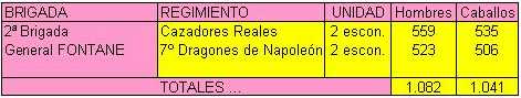 El conde de Reille contaba con dos divisiones; una de ellas la mandaba él mismo, formada por dos brigadas: