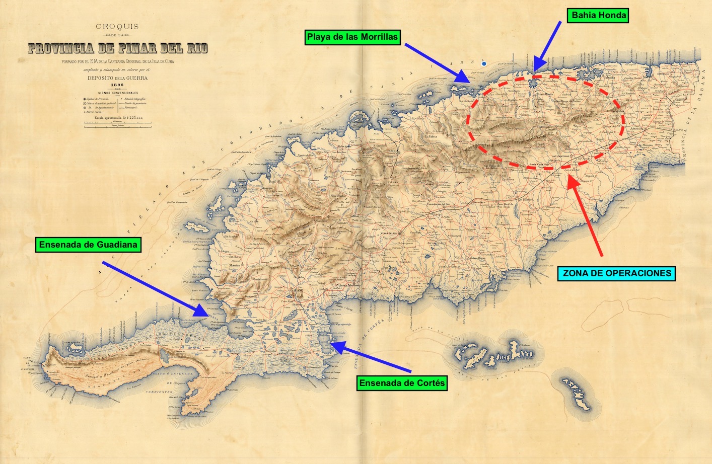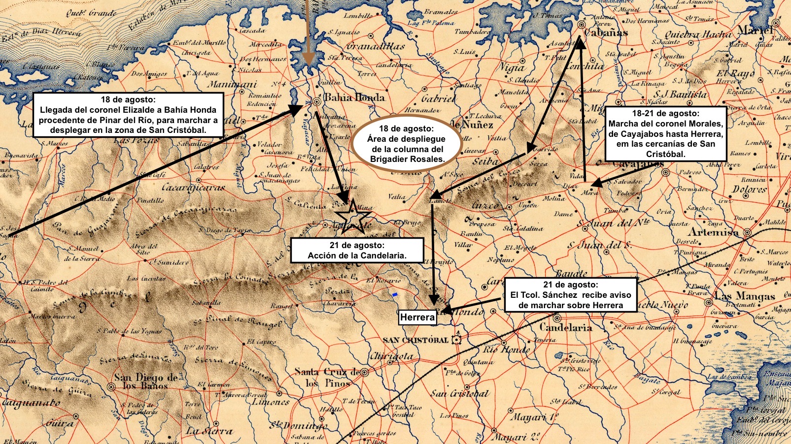 El coronel Elizalde se dirigió con su columna hacia Bahía Honda pasando por Consolación del Sur y Consolación del Norte.