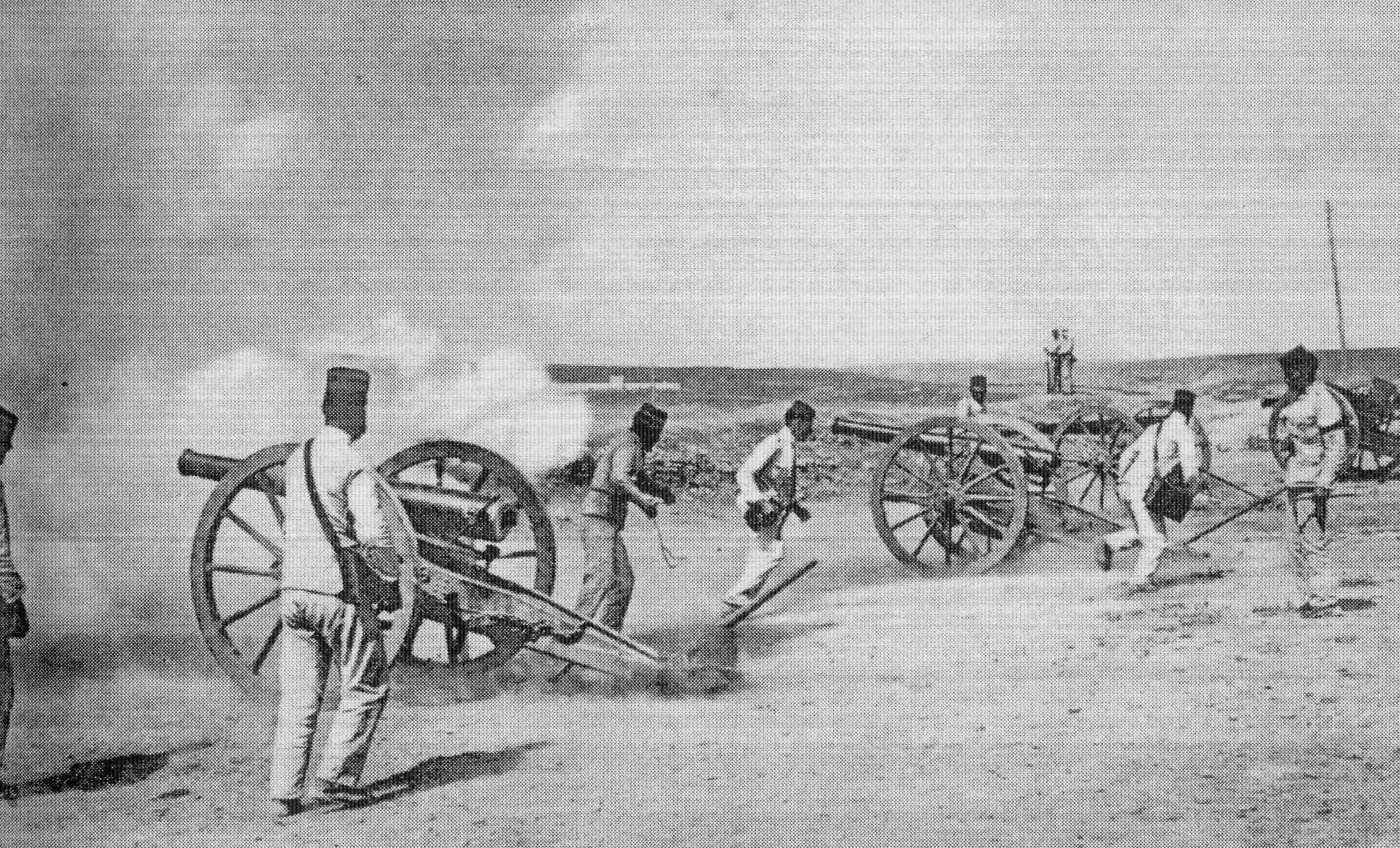 Artillería disparando contra los rifeños durante el repliegue del barranco del Lobo el 27 de julio (Archivo de Antonio Carrasco).