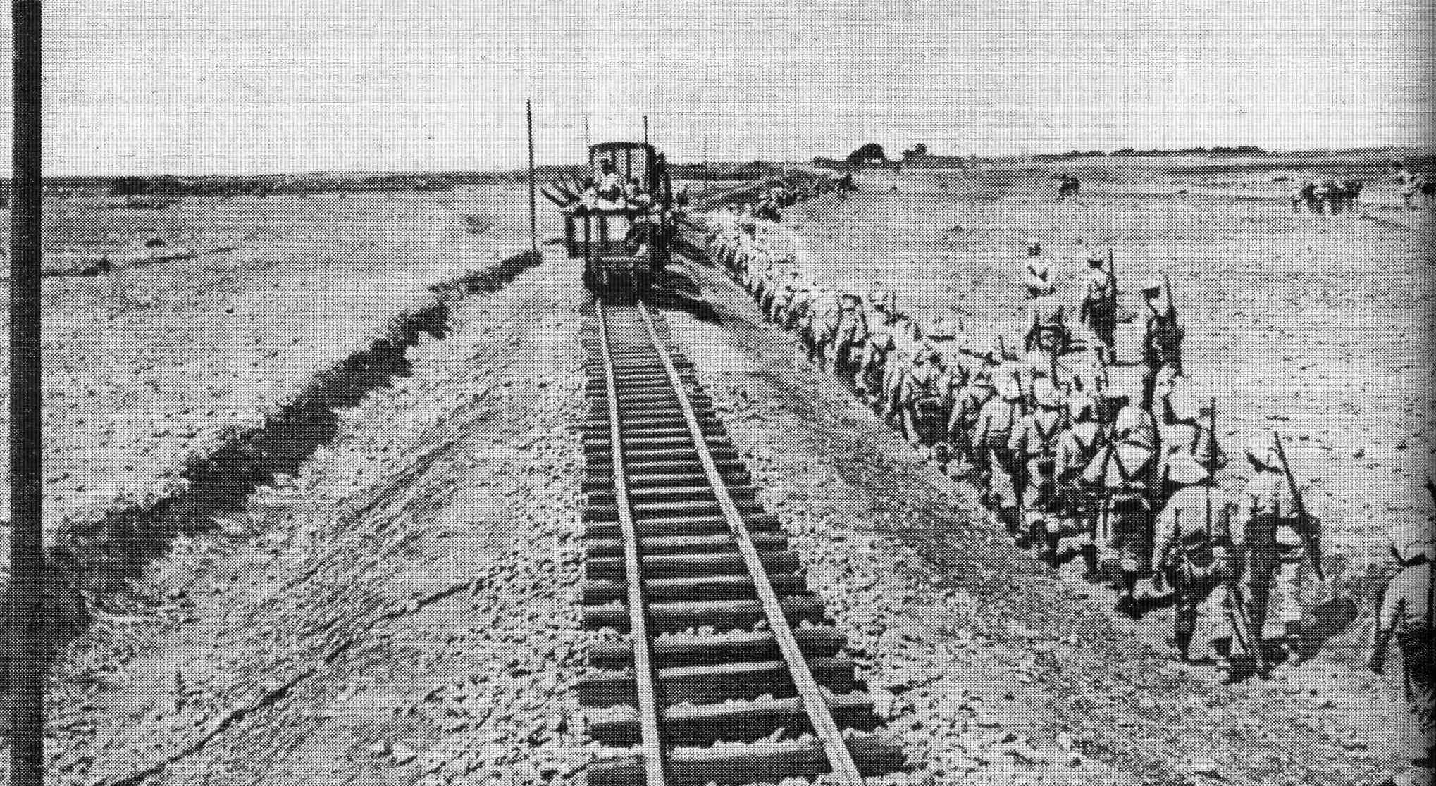 Vista de un convoy sobre el ferrocarril de la Compañía Norteafricana, protegido por una columna (Archivo de Antonio Carrasco).