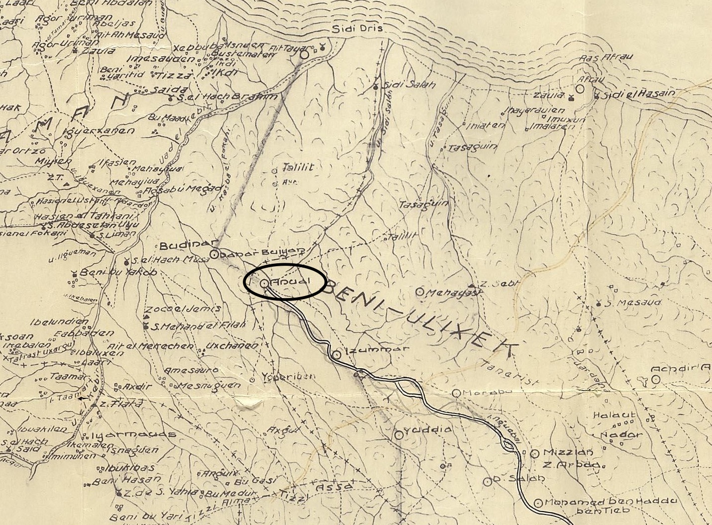 Campamento avanzado de tropas españolas en su avance hacia el territorio de Alhucemas. Las tropas allí acampadas, que fueron amontonándose sin control en un deseperado intento de romper el cerco sobre Igueriben, fueron testigos de su propia incapacidad para vencer a los rifeños, por lo que la desmoralización cayó como un plomo el 22 de julio de 1921 sobre la fuerza en retirada, originándose una desbandaba desordenada y sin control de los oficiales sobre la retaguardia, que arrastró tras de sí a todas las posiciones españolas, que iban cayendo una a una como un efecto dominó.