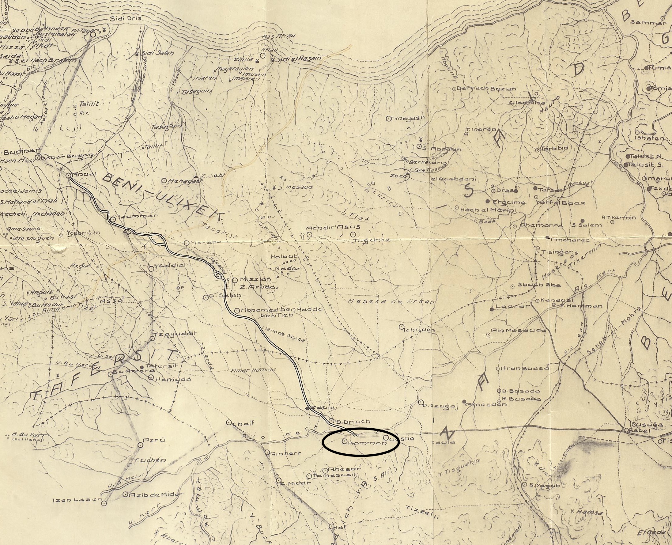 No hay información directa de esta posición; incidentalmente dice el soldado del regimiento de San Fernando Juan Asensio Domínguez, de la guarnición de Ain Kert, en atestado número 113, ya registrado, que estaba guarnecida aquella posición por una sección destacada de su compañía, y que esta sección se incorporó a ella al pasar por el camino la columna del general Navarro, en retirada sobre Batel, sin tener bajas, aun cuando fue hostilizada.