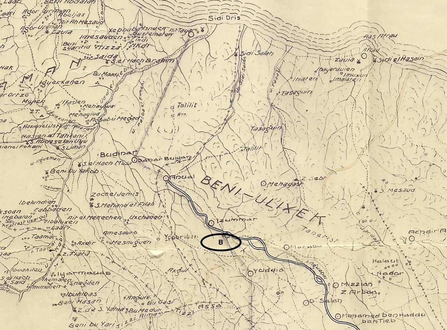 Posición guarnecida por una compañía del regimiento de Ceriñola y un destacamento de 40 policías, todo al mando del capitán de Infantería don Miguel Pérez García. Todos fueron muertos. Se desconoce si esta posición fue evacuada el 22 de julio por su capitán hacia la posición de Yebel Uddia o, por el contrario, fue asaltada y aniquilada por los rifeños ese mismo día.