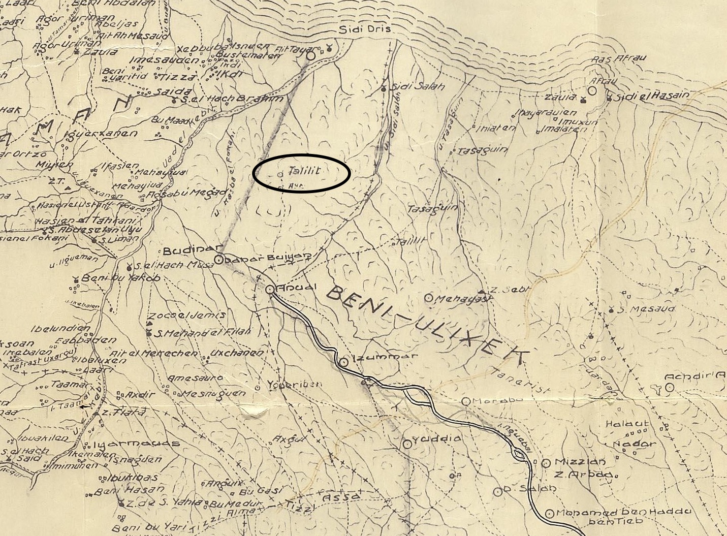 Talilit distaba cuatro kilómetros de Annual, por un camino de difícil tránsito rodado debido a los barrancos que le cortaban; hasta el punto que la batería ligera que concurrió a la ocupación de la posición el 3 de junio tuvo necesidad de rodearlos y, en uno de los barrancos, aun enganchando siete rejas y pasando las piezas una a una, estuvo la batería detenida tres horas, sola completamente, entregada a sus propios elementos, no pudiendo por ello llegar a tomar materialmente parte en la operación, que por lo demás se hizo sin resistencia.