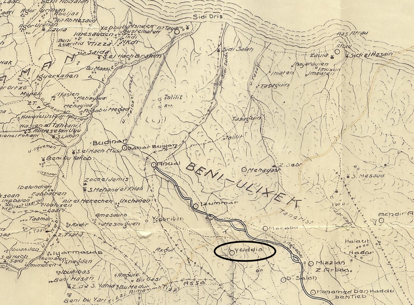 El teniente Vidal Cuadras, de Artillería folio 1492-, dice que el 22 [de julio] pudo observar desde su posición de Cheif el ataque, durante una hora, de Yebel Uddia, de la que vieron con los gemelos a última hora de la tarde que habían desaparecido las tiendas, como asimismo manifiesta que la vio arder el teniente de Artillería Reig- folio 796- desde Buhafora.