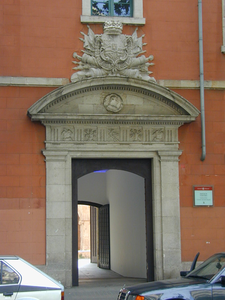 Debajo se muestran diversas fotografías del convento de San Agustín Viejo tomadas en el año 2004. Las primeras corresponden a la puerta trasera del convento (fechada en 1650), donde se observa un castillo, emblema del Arma de Ingenieros. Las siguientes son de las puertas de la fachada principal de la Academia, correspondientes al edificio construido en 1752 que, tras albergar diversos órganos del Ministerio de Defensa hasta la década de 1980, es ahora la sede del Museo del Chocolate de Barcelona.