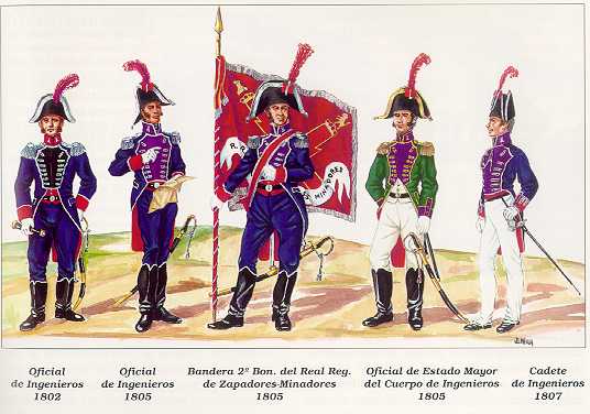 Durante el periodo 1803-1808 salieron de la Academia de Ingenieros un total de 87 oficiales, que se integraron en el Real Cuerpo y tuvieron diferentes visicitudes durante la Guerra de la Independencia.