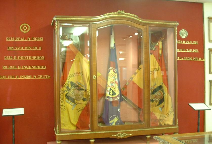 La Cámara de Comercio e Industria de la ciudad de Burgos regaló la Bandera a la Academia de Alféreces Provisionales de Ingenieros. Su escudo fue bordado por las religiosas del convento de las Adoratrices de Burgos. El acto de entrega de la Bandera tuvo lugar la mañana del domingo 12 de marzo de 1939, actuando como madrina doña Teresa Jalón Rodríguez, esposa del general jefe del Ejército del Norte y ministro de Defensa Nacional, don Fidel Dávila Arrondo.