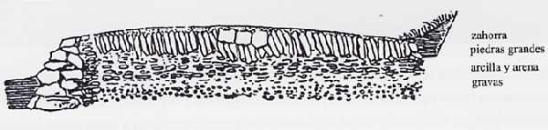 [28].- En algunos casos, en función del terreno (desmontes principalmente), el muro de contención llegaba a los siete metros de altura.
