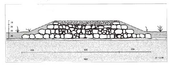 [33].- El pie equivale a 55,7 cm., lo que significaría un ancho de 15,6 m. aproximadamente.
