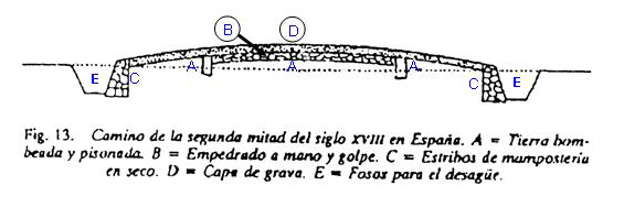 Como hemos señalado repetidamente, a partir de 1749 se construyen los caminos en España con pavimento, buscando la solidez, la aptitud para el paso de coches y carros, y finalmente la mayor comodidad posible para los pasajeros. En este sentido, el de la pavimentación, nunca se olvidó el sistema de "a la romana", aunque también pronto se llegó a la conclusión de que, siempre partiendo de tal sistema, había que modificarlo, ya que los firmes romanos se consideraban muy caros y aunque de gran duración, excesivamente rígidos, lo que iba en detrimento de la velocidad y comodidad en el transporte de viajeros.
