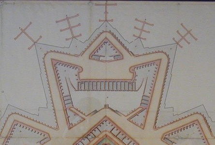 En la cortina hay quince bóvedas para alojamiento de tropa, y en el centro de la gola un pozo de agua dulce y un manantial muy abundante cubierto con una bóveda. Delante del hornabeque existe un revellín con dos bóvedas para alojamiento de su guarnición.