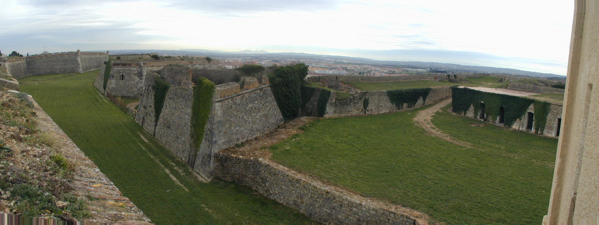 Un camino cubierto de 3.120 metros con sus correspondientes plazas de armas rodea al recinto exterior. Entre el recinto exterior y el interior existe un amplio foso; la altura de los baluartes y cortinas es de 13 metros sobre el foso. La superficie total ocupada es de 32 hectáreas y 36 áreas.