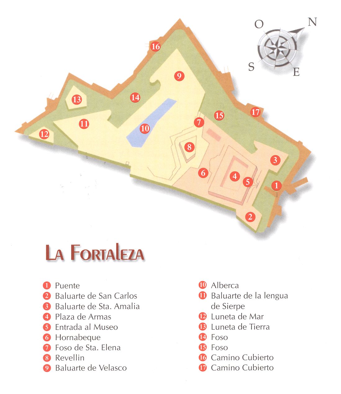 El foso este se encuentra delante de los baluartes de San Carlos y Santa Amalia, cruzado por el puente de acceso al castillo. Por último, nos queda el camino cubierto, situado en el exterior de los fosos.