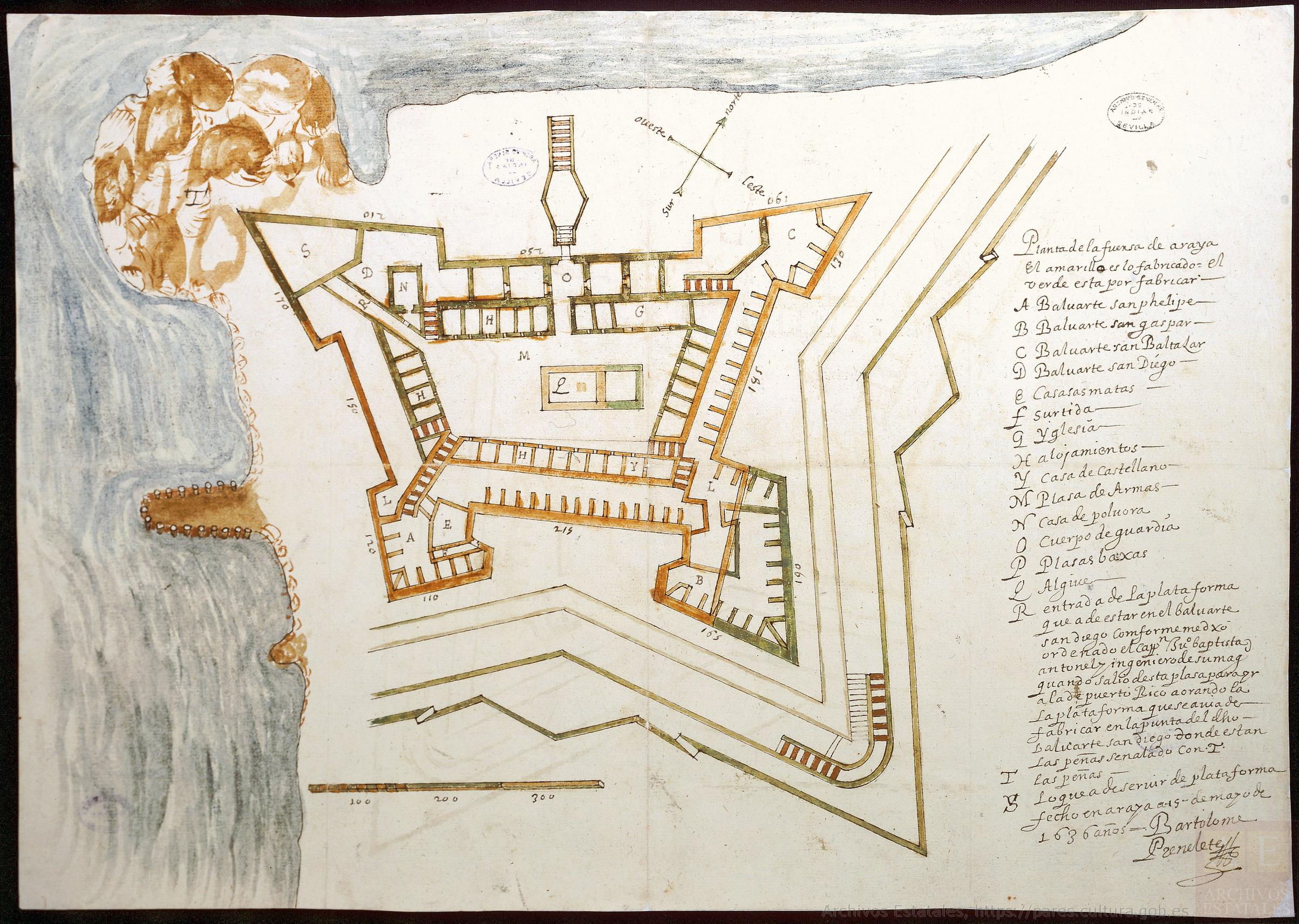En 1605 los españoles repelieron un primer ataque de corsarios holandeses a Araya, por lo que inmediatamente el ingeniero Bautista Antonelli fue enviado a Cumaná desde la península para iniciar los planos y los trabajos de la traza para la construcción de un fuerte defensivo en Araya, en cuyo proyecto estuvo trabajando durante cinco años antes de regresar a la península, parándose las obras.