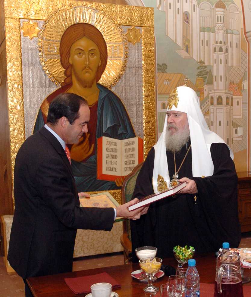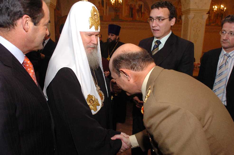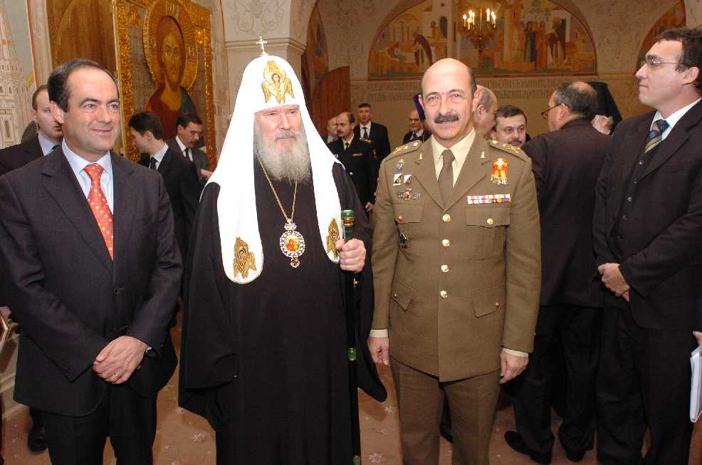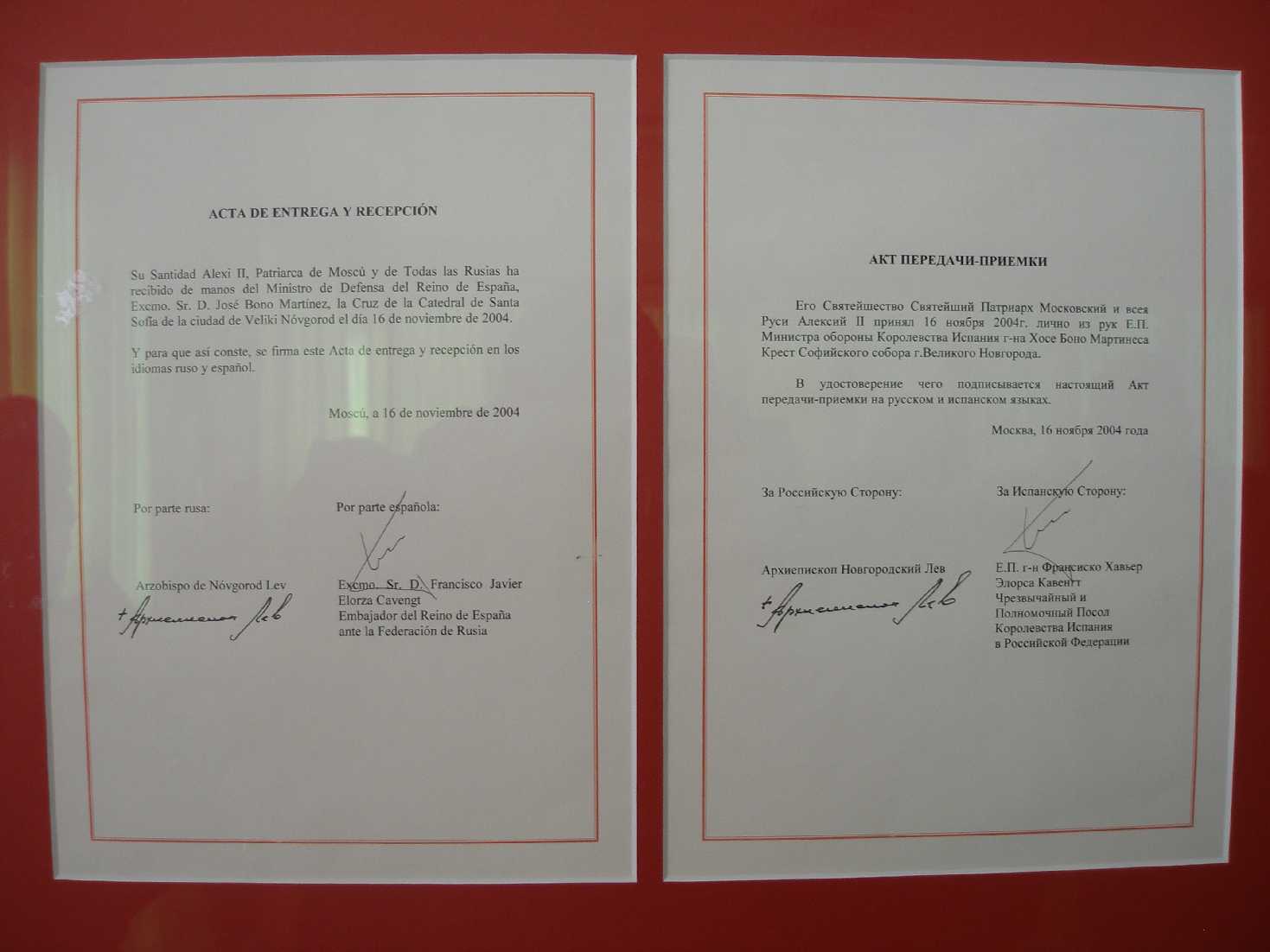En un salón contiguo se firmaron las actas de entrega y el Patriarca ruso ofreció un desayuno en el que se intercambiaron palabras cordiales y regalos conmemorativos. La copia española del acta de entrega de la cruz se conserva en la capilla de la Academia de Ingenieros, como donación del ministro Bono al general Director de la academia.