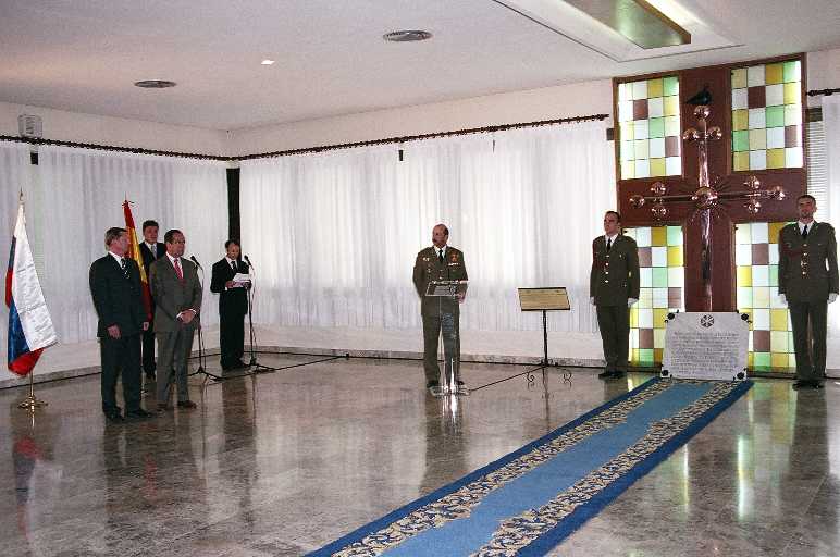 La réplica de la cruz de Novgorod se encontraba colgada y expuesta en la pared del fondo de la capilla, en el mismo lugar donde se expuso la cruz original durante tantos años. Tras los discursos de los ministros Ivanov y Bono, y del general Director, se firmó el acta de entrega y se descubrió una placa metálica conmemorativa del acto. A continuación las autoridades abandonaron la capilla en dirección al Salón Noble de la Academia, donde ofrecieron una rueda de prensa. Tras firmar el Libro de Honor de la Academia, se sirvió un almuerzo.
