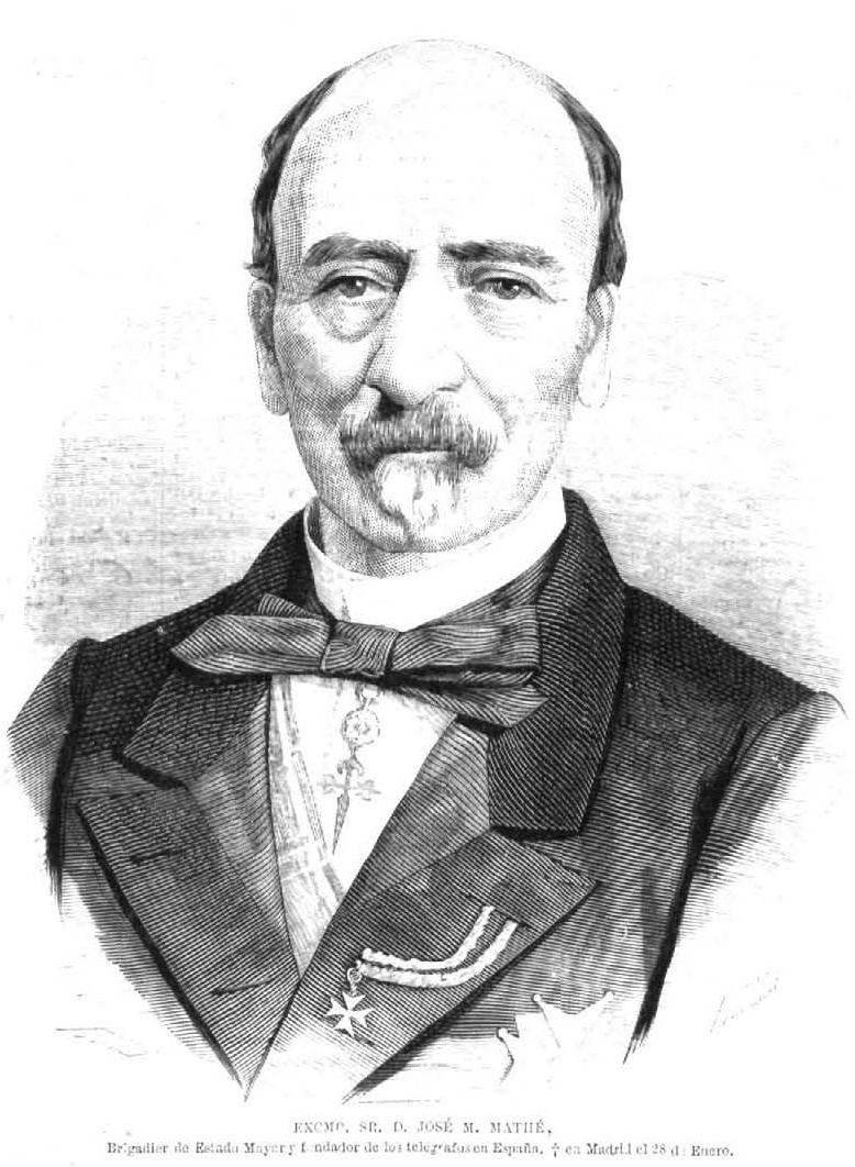 El coronel Mathé se reveló un gestor infatigable, decidido y enérgico. Había colaborado anteriormente en el proyecto telegráfico que el teniente de navío don Juan José de Lerena había presentado al Gobierno en los años 30 y había formado parte de la Comisión Topográfica de España. Conocía los problemas constructivos de las torres ópticas, pues no en vano había estado a cargo de las fortificaciones de Castro Urdiales. Su actividad comenzó de forma tan frenética que consiguió que por Real Decreto de 5 de agosto de 1845 fuese aprobado el Reglamento orgánico del Servicio Telegráfico. Por Real Orden de 14 de junio de 1847 fue nombrado responsable de la organización del Servicio Telegráfico nacional, dentro del Ministerio de la Gobernación. En enero de 1851 fue nombrado Director General, con el título de Director Jefe de las Líneas.