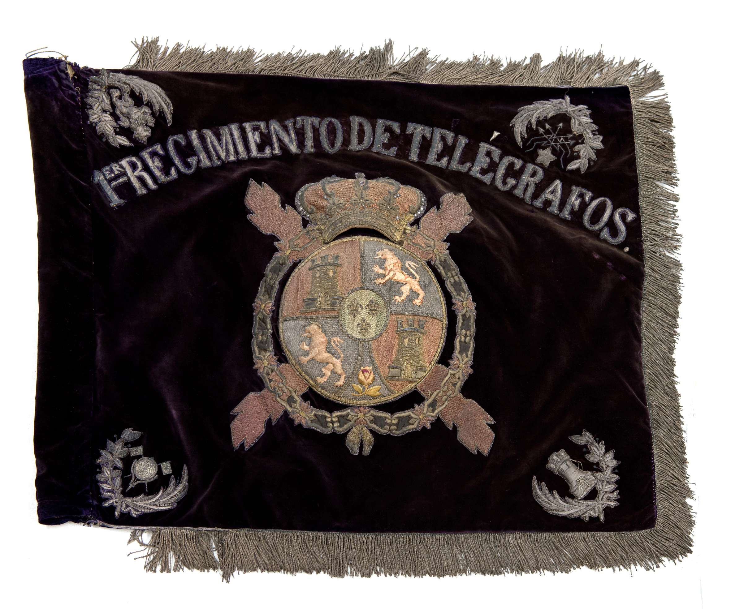 Primer estandarte: correspondiente al recibido por el 2º Batallón del 4º Regimiento de Ingenieros en 1875, unidad montada que encuadraba a las unidades de Telégrafos y cuyo estandarte se entregó al Batallón de Telégrafos con ocasión de su creación en diciembre de 1884, entregándose posteriormente al regimiento en 1902 y 1912.